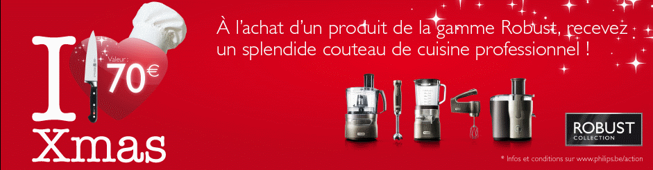 À l’achat d’un produit de la gamme Robust de Philips, vous pouvez recevoir un splendide couteau de cuisine professionnel et prolonger votre garantie de 2 à 15 ans.