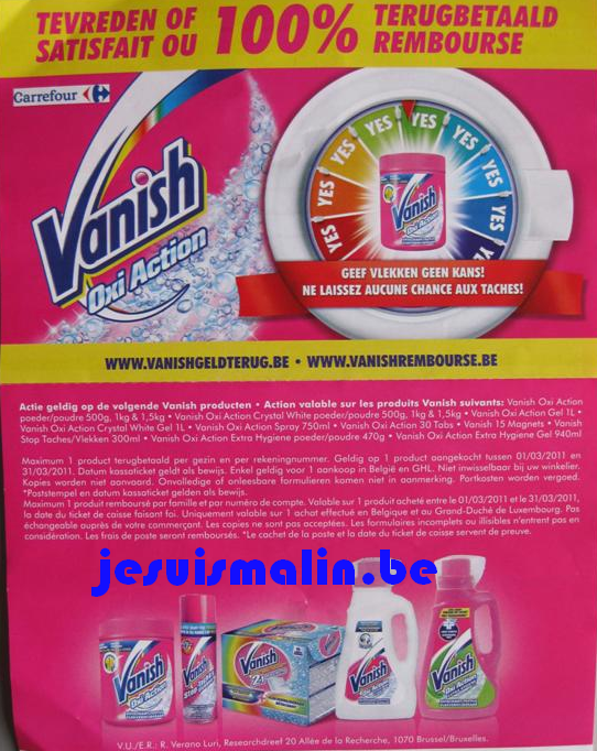 Entre le 01/03/11 et le 31/03/11, votre achat de Vanish Oxi Action est satisfait ou remboursé!