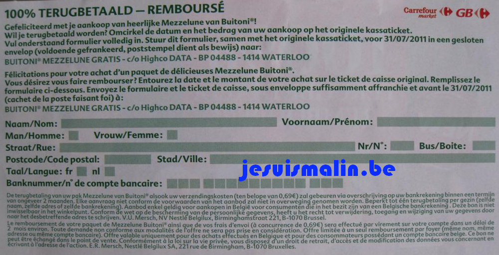 Renvoyez le formulaire complété et votre ticket de caisse avant le 31/07/11 à :