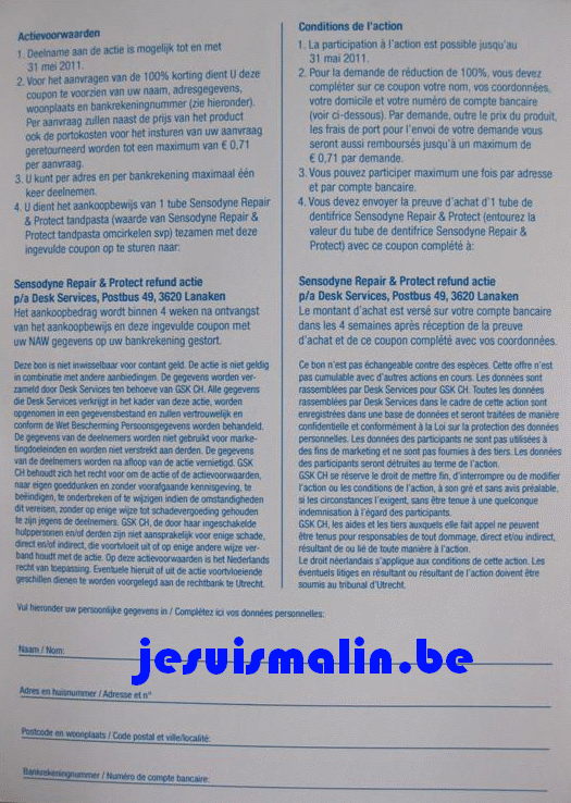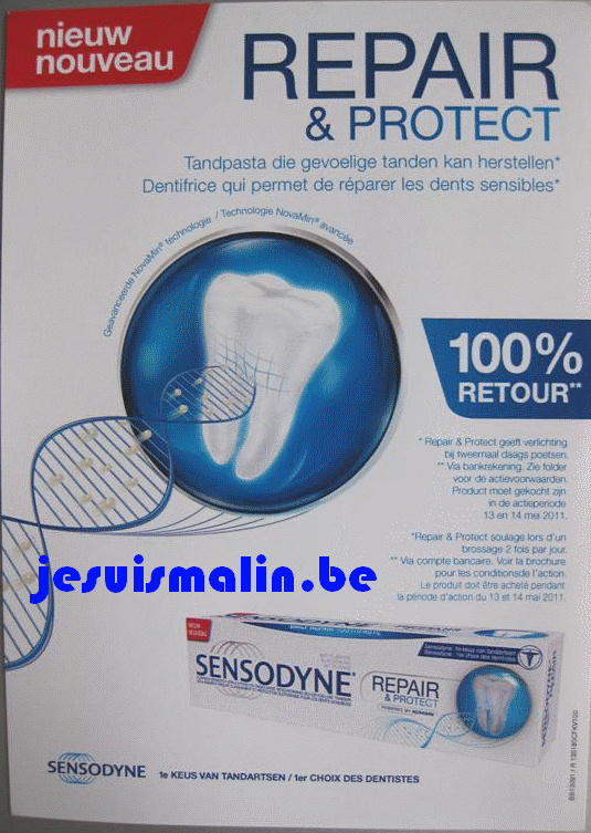 Achetez le 13 ou le 14 mai 2011 un dentifrice Sensodyne Repair & Protect et votre achat sera 100% remboursé !