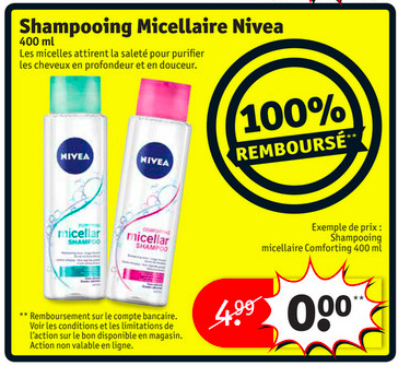 Entre le 29/01/2018 et le 11/02/2018, votre achat d’un shampooing micellaire Nivea 400 ml est 100% remboursé !