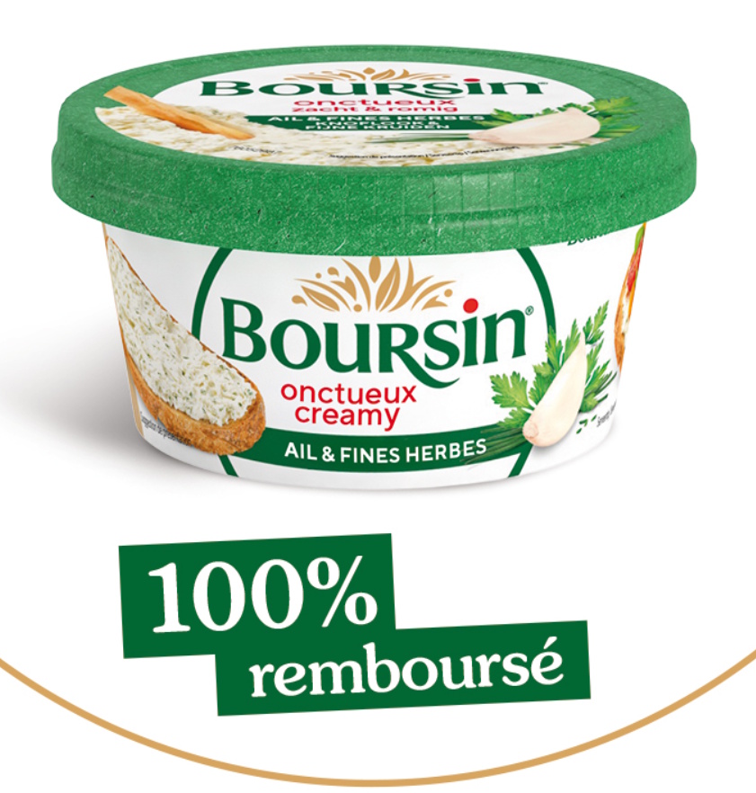 Du 23/02/2026 au 08/03/20265, votre achat d’un fromage Boursin Onctueux Ail & Fines Herbes 125 g (3073781091861) est 100% remboursé ! Attention : la période de validité peut être raccourcie si la limite des 4000 demandes est atteinte.